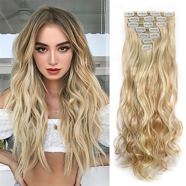 Extensions synthétiques Clips Cheveux Synthétiques Longue Extension des cheveux A Clipser 1 pc Doux Résistant à la chaleur Duveteux Femme