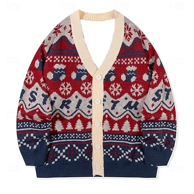 Noël Homme Motif de Noël Pull Fair Isle Gilet Cardigan Col en V Occasionnel École Vacances Quotidien Impression 3D Garder au chaud manche longue Printemps Automne Hiver Rouge