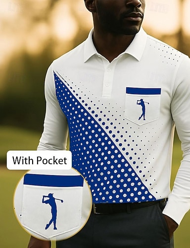 Homme Géométrique Golf Polo Polos de Sport manche longue Polos Chemises à Col Vêtements de sport Athleisure Tenue quotidienne Impression 3D Printemps Automne Noir Bleu Violet