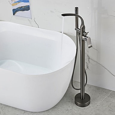 robinet de baignoire autoportant, bec pivotant à 360 °, robinet de baignoire sur pied, robinet en laiton à une poignée avec pulvérisateur de douche à main