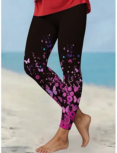 Femmes Pantalons Leggings Streetwear Occasionnel Longueur complète Taille haute Fleuri Taille Élastique Imprimé Respirabilité Confortable Élastique Vacances Rue Tenue quotidienne Jaune Rouge Violet