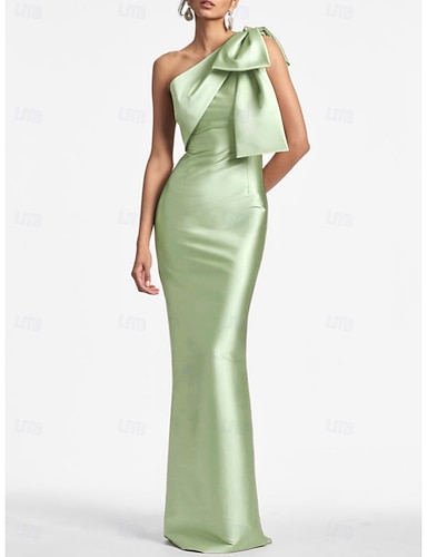 Fourreau Colonne Longueur au sol Robes de Bal Robe de Soirée Tenue de soirée Élégant Manche Courte Une Épaule Mariage Formel Satin avec Noeud(s)