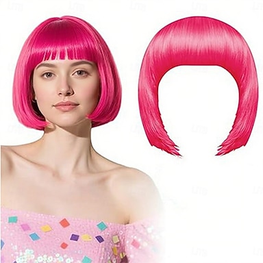 Perruque de carnaval 2026 Rose Noir Bleu Lisse Bob Court Perruque synthétique de festival Mardi Gras Parade Coiffure de costume de cosplay pour Femmes
