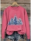 Femmes Sweatshirt Pull Graphique Arbre de Noël Occasionnel manche longue Col ras du cou Col rond Hauts Réguliers Rue Tenue Quotidienne Occasionnel Patchwork Noir Blanche Rose Claire Vin Gris foncé