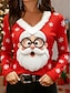 Femmes Sweatshirt Pull Père Noël Noël Occasionnel manche longue Col en V Hauts Réguliers Rue Tenue Quotidienne Occasionnel Patchwork Imprimé Violet foncé Vin bleu marine Automne Hiver