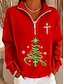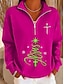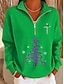 Femmes Sweatshirt Pull Graphique Arbre de Noël Occasionnel manche longue Col haut Demi-zip Hauts Réguliers Tenue Quotidienne Occasionnel Sports Rose Claire Rouge Bleu Vert Automne Hiver