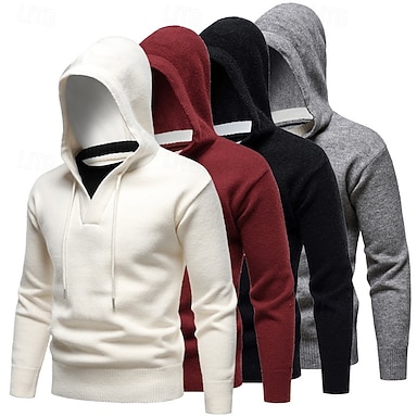 Homme Pull Pull Tricoté Côtelé Tricoter Hauts Réguliers Cordon de serrage Tricoté Uni À capuche Mode Basique Vacances Tenue quotidienne Vêtement Tenue Automne Hiver Noir Rouge M L XL