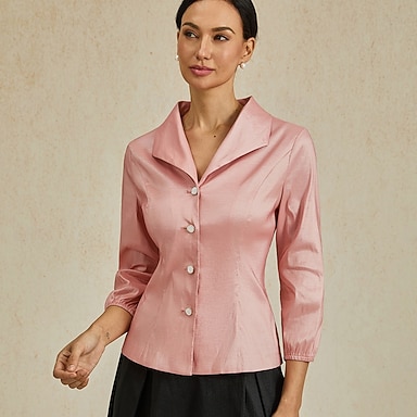 Femmes Chemisier Hauts de soirée Nœud devant Élégant Métallique Moderne Manche 3/4 Col en V Hauts Réguliers Soirée robe demoiselle d honneur Semi-Formel Rose ensoleillée Printemps, Automne, Hiver, Été