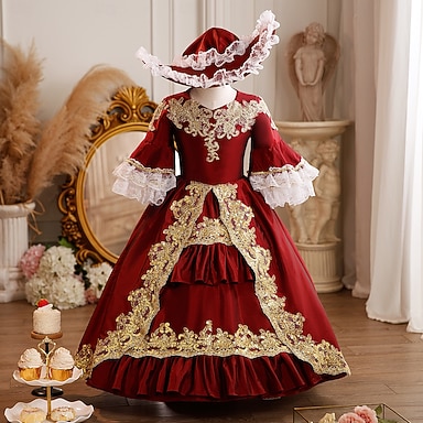 Rétro Vintage Rococo Chic Maxi Robe de cocktail Accessoires Manche cloche Princesse Nœud Rétro Robe de bal Col romain Déguisement Fille Royal Noël Halloween Carnaval Mascarade Fête de mariage Festival