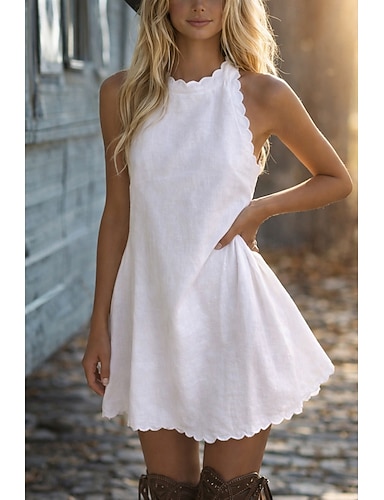 Femmes Mini robe Robe d'Été Robe Blanche Robe de remise des diplômes Robe en coton et lin Basique Quotidien Vacances Date Coupe Ample Uni Sans manches Col ras du cou Noir Blanche Vert Claire Rose