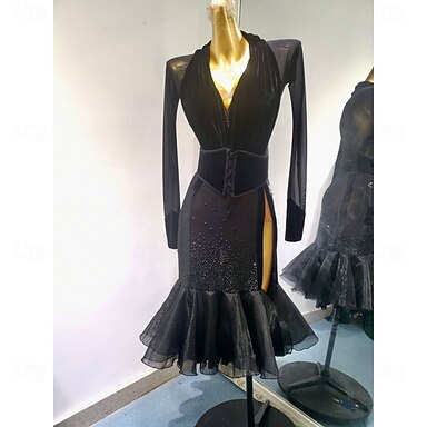 danse salsa robe de danse latine cristaux / strass femme entraînement performance sans manches haute spandex tulle