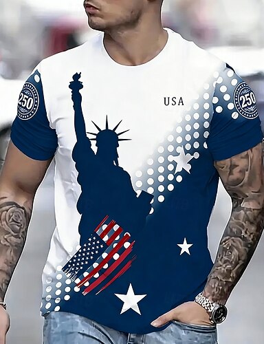 4 juillet 2026 250e Jour du Souvenir T-shirt à col rond manches courtes Impression 3D Drapeau des États-Unis Masculin Daily Street