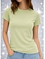 Femmes T-shirt Tunique Couleur Unie Mode Classique Occasionnel Manche Courte Col ras du cou Hauts Réguliers Quotidien Sports Sortir Noir Blanche Vert Claire Rose Claire bleu marine Été Printemps