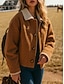 Femmes Veste Sherpa Confortable Respirant Avec Poches Boutons Occasionnel Uni Vacances Rue Occasionnel Tenue quotidienne Simple Boutonnage Court Col Rabattu Coupe régulière manche longue Vêtements