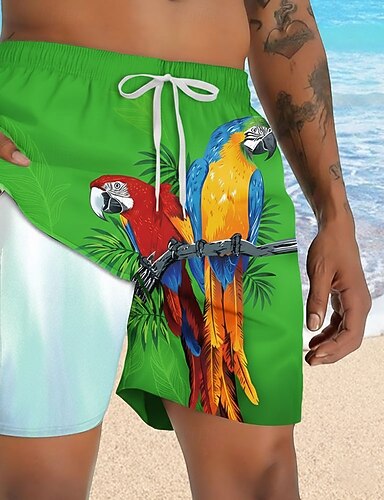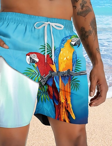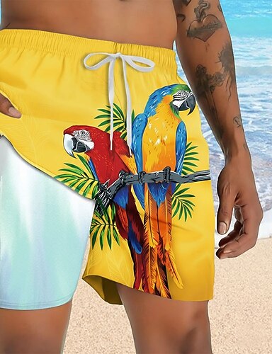 Homme Animal Poussin Drôle Short doublé Short de bain 2 en 1 Shorts de bain Taille Moyenne Hawaïen Vacances Fête Tenue de plage Poches Latérales Avec doublure de compression Taille élastique avec