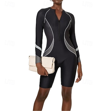 Femmes Maillot Anti UV Une pièce Patchwork Zip Up Longueur du genou Protection UV Élastique manche longue Maillot de Bain Maillot de bain Surf Plongée en apnée Natation Printemps