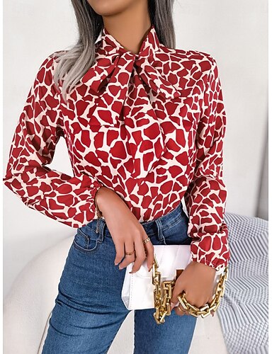 Femmes Chemise Chemisier Hauts en mousseline de soie Nœud devant Imprimé Graphique Abstrait Élégant Classique Moderne manche longue Cravate au cou Hauts Réguliers Quotidien Fête Sortir Rouge bleu