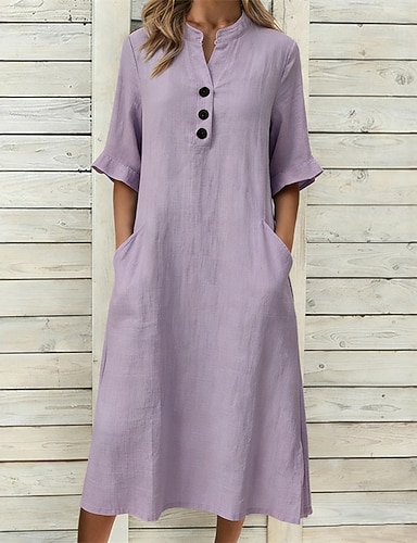 Femmes Robe Midi Faux coton lin Robe fourreau Robe Décontractée Robe d'été en coton Basique Moderne Quotidien Week-end Coupe Ample Uni Demi Manches Col ras du cou Vert militaire Rose Claire bleu