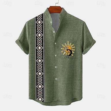 Homme Chemise Chemise de quilles Chemise boutonnée Manche Courte Rétro Vintage Décontractées Tribal du quotidien Vacances Eté Printemps Col Mao collier grand-père Imprimer Vert Kaki Beige