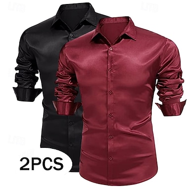 Homme Chemise Comme de la soie Chemise en satin Chemise habillée Chemise Décontractée Chemise Boutonnée Uni Formel Mariage Blanc + Vert Vert + rouge Noir + blanc Blanc + Bleu manche longue Revers