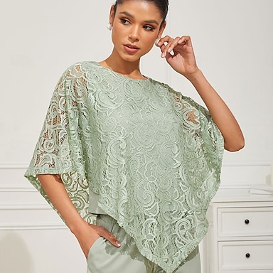 Femmes Chemisier Hauts Élégants Dentelle Patchwork Superposé Uni Élégant Demi Manches Col ras du cou Hauts Réguliers Quotidien robe demoiselle d honneur Violet Été Printemps