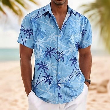 Homme Cocotier Plantes Tropicales Chemise hawaïenne Chemise Boutonnée Chemise Aloha Manche Courte Hawaïen Vacances Tenue de plage Été Printemps Col Rabattu Impression 3D chemises à col Bleu Rose