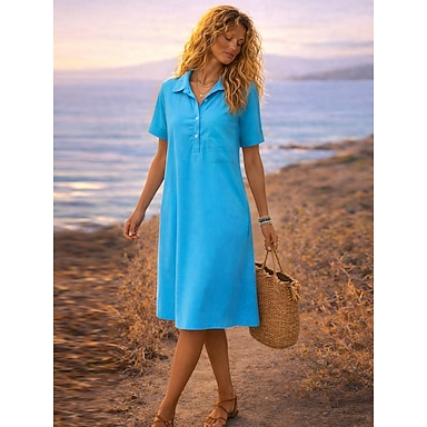 Femmes Robe Midi Robe Décontractée Robe trapèze Élégant Mode Moderne Extérieur Vacances Sortir Coupe régulière Uni Manche Courte Col ras du cou Noir Vert Véronèse bleu marine Gris foncé Été Printemps