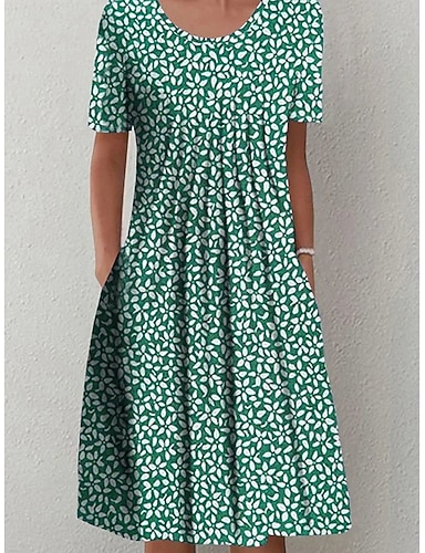 Femmes Robe Midi Robe trapèze Vacances Occasionnel Extérieur Sortir Coupe régulière Fleuri Graphique Manche Courte Col carré Bleu Rouge Vert Été Printemps