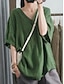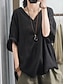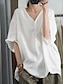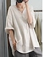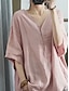 Femmes Chemisier Faux coton lin Couleur Unie Élégant Occasionnel Manche 3/4 Col en V Hauts Réguliers Quotidien Noir Blanche Rose Claire Vert Abricot Été Printemps