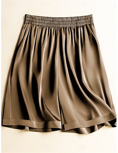 Femmes Bermuda Culottes Jambe Large Chinos Shorts Élégant Vacances ancien Longueur complète Taille haute Couleur Unie Patchwork Ceinture Élastique Confortable Respirant Non Elastique Quotidien