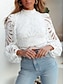 Femmes Chemisier Dentelle Patchwork Couleur Unie Élégant Basique Occasionnel manche longue Col haut Hauts courts Quotidien Blanche Été Printemps Automne Hiver
