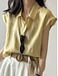 Femmes Chemisier Chemise en faux lin Boutons Couleur Unie Élégant Occasionnel Manche Courte Col de chemise Hauts Réguliers Quotidien Bleu Blanche Jaune Vert Été Printemps