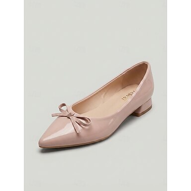 Escarpins roses vernis à petits talons pour femmes - chaussures élégantes à bout pointu et nœud pour une garden-party