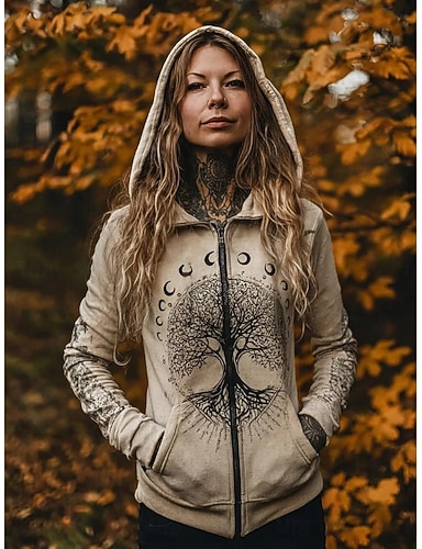Femmes Sweats à capuche zippés Fermeture éclair Avec Poches Imprimé Graphique Plaid Mode Western Occasionnel manche longue À capuche Hauts Réguliers Occasionnel Rue Tenue Quotidienne Gris Claire Gris