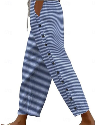 Femmes Pantalon en coton et lin Chinos Pantalon d'été Vacances Streetwear Basique Longueur complète Taille moyenne Uni Avec Poches Confortable Confort Non Elastique Quotidien Extérieur Vacances Bleu