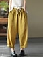 Femmes Faux coton lin Pantalons Pantalon d'été Culottes bouffantes Vacances Mode Basique Longueur complète Taille moyenne Uni Avec Poches Taille Élastique in in france they say Pontalon wide leg