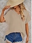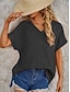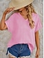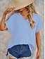 Femmes Chemise Coton mélangé Boutonner Chemisier Boutons Uni Basique Occasionnel Manche Courte Col en V Hauts Réguliers Fête Sortir Rose pâle Vert Claire Bleu clair Été