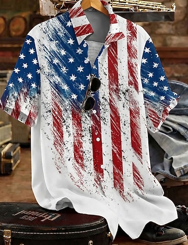 Homme 4 juillet, 250e anniversaire des États-Unis Aigle Drapeau Américain Chemise Chemise d'été Chemise Boutonnée Manche Courte Patriotique Extérieur Fête Été Printemps Col Rabattu Impression 3D