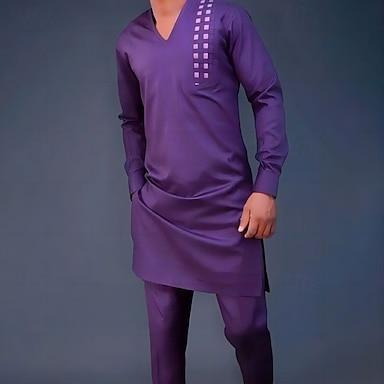 Homme Vêtements d'intérieur Chemise de nuit Ensembles 1 jeu Plein mode Confort Intérieur du quotidien Polyester Respirable Col V manche longue Printemps Automne Violet