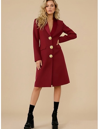 Femmes Robe smoking Ligne A Cocktail Affaires Bureau Tissu Extensible Élégant Formel manche longue Mi-long Cranté Simple Boutonnage
