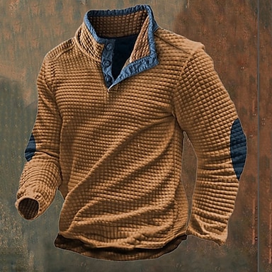 Homme Sweat-shirt Sweat-shirt gaufré Jaune Vert Col montant Bloc de Couleur Bloc de Couleur A côtes Texturé Sport & Loisir Quotidien Fête Polyester Streetwear Basique Occasionnel Printemps & Automne