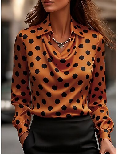 Femmes Chemise Imprimé Drapé À pois Élégant Occasionnel manche longue Col Bénitier Hauts Réguliers Quotidien Travail Fête Jaune Orange Vert Printemps Automne