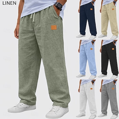 Homme Pantalons en Lin Pantalons Pantalon d'été Pantalons Amples Pantalons de Plage Cordon de serrage Taille Élastique in in france they say Pontalon wide leg Uni Confort Respirant Longueur complète