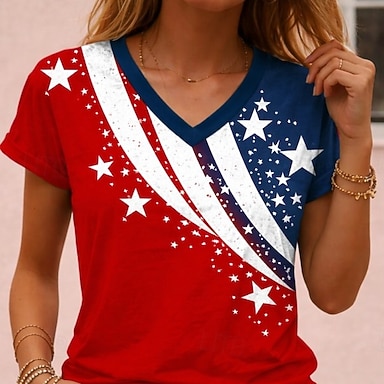 Jour de l'Indépendance Américaine Femmes T-shirt Imprimé Graphique Drapeau Lettre ancien Élégant Classique Manche Courte Col ras du cou Hauts Réguliers Quotidien Bleu Noir Rouge Été Printemps