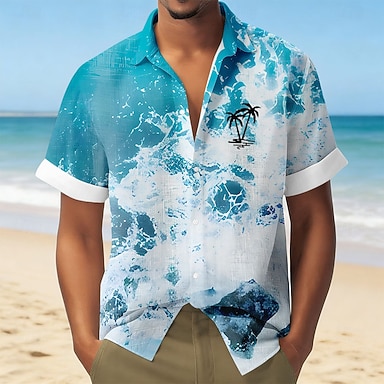 Homme Cocotier Océan Plantes Tropicales Chemise hawaïenne Chemise Boutonnée Chemise Aloha Manche Courte Hawaïen Vacances Fête Tenue de plage Été Printemps Col Rabattu Impression 3D Chemise en lin