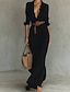 Femmes Robe Longue Maxi Robe Robe Chemise Moderne Extérieur Quotidien Sortir Coupe régulière Uni manche longue Col de chemise Noir Blanche bleu marine Kaki Printemps Automne