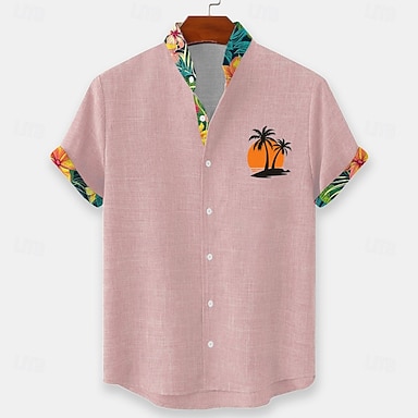 Homme Cocotier Plantes Tropicales Fleurs Chemise hawaïenne Chemise Boutonnée Chemise à col montant Manche Courte Hawaïen Occasionnel Vacances à la Plage Été Printemps Col mandarin Impression 3D