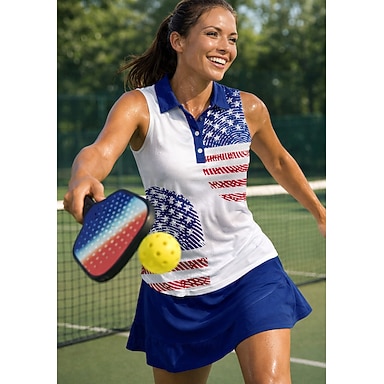 250e anniversaire de l'Amérique Jour de l'Indépendance Femmes Drapeau national T-shirt POLO Sans manches Sportif UPF50+ Résistant aux UV Entraîneur Respirant Tennis Badminton Exercice en Plein Air