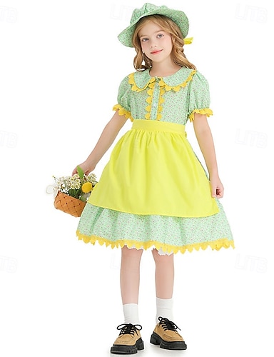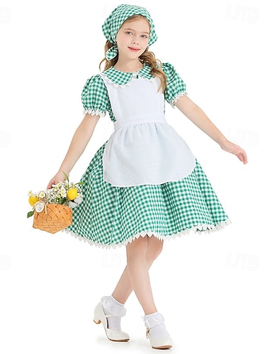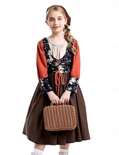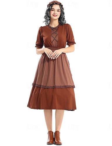 250e anniversaire des États-Unis 19ème siècle Tenues Robe Prairie Fille pionnière Epoque Coloniale Guerre d'indépendance américaine Déguisement Femmes Mascarade 4 juillet Adultes Robe Chapeau