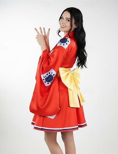 Aventurier des océans Capitaine Pirate au chapeau de paille Manga Tenues Kimono traditionnel japonais Costumes de Cosplay Halloween Carnaval Soirée Performance Ceinture Pour Femmes Adulte